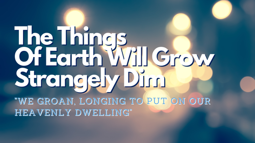 As 2 Corinthians 5:1-4 expresses, we are not made for this world. Our home is with Christ. And we must strive to be clothed with His Righteousness and not clothed with the temporary things of this world. In other words “the things of this world will grow strangely dim†and you will begin to reallocate your spiritual and physical assets (which are given to you by God) in such a way that most glorifies your Lord and Savior.