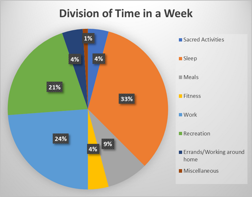 This chart assumes that in a week a given individual sleeps 8 hours a night (the most commonly recommended amount), spends 7 hours on fitness related activities, spends 40 hours at work, 14 hours consuming meals, 7 hours on sacred activities, such as reading the Bible, attending church, engaging in fellowship, and a whopping 35.25 hours on recreation activities (taken from the average amount of tv an American watches in a week). This chart is certainly imperfect, but the goal is to point out how little time is spent in the sacred and how much time is reserved for the common. If you are wondering why your spiritual growth seems stunted, look at where your fleeting life is going. Look at how much time you devote to things without significance and how you exchange the glory of beholding Christ for the beholding of the banal1.